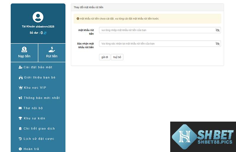 Trước khi các bạn muốn rút tiền ra khỏi tài khoản cá cược. Hãy thiết lập sẵn mật khẩu rút tiền nhé. Đây là bước bảo mật rất quan trọng, giúp bạn hạn chế tình trạng bị mất tiền oan.